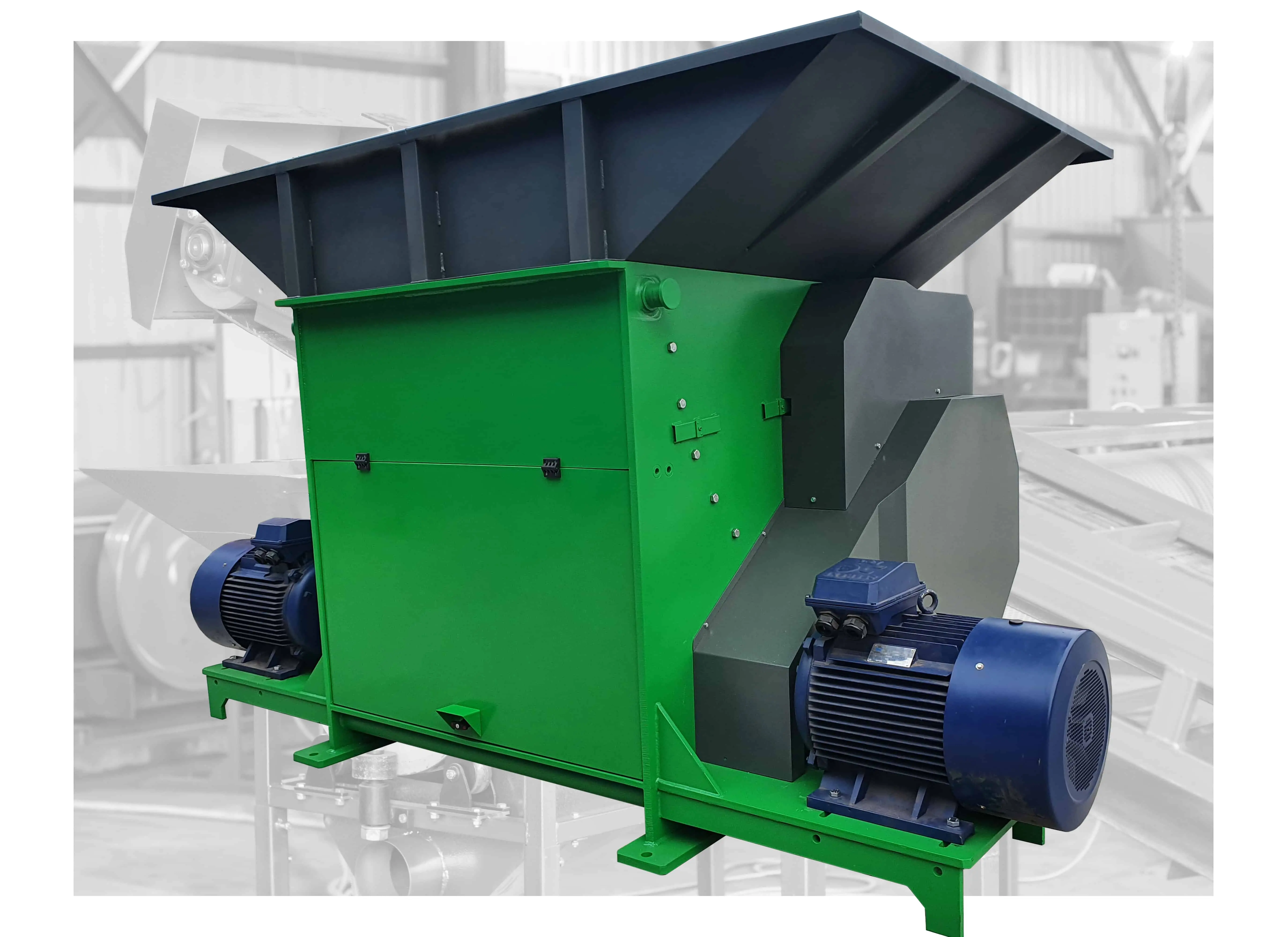 Vyrábíme na zakázku průmyslové drtiče dřeva, plastů, polyetylenu, automobilových pneumatik a hrubého domovního odpadu. Provedení se volí v závislosti na surovině, která bude drtičem drcena. Může být jednohřídelový, dvouhřídelový, s různým tvarem nožů.